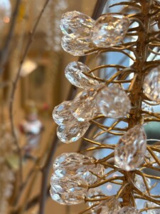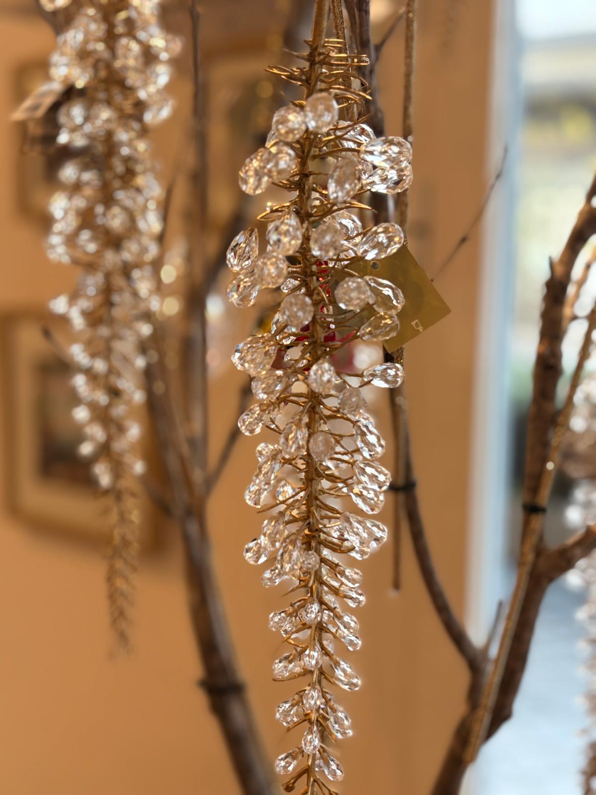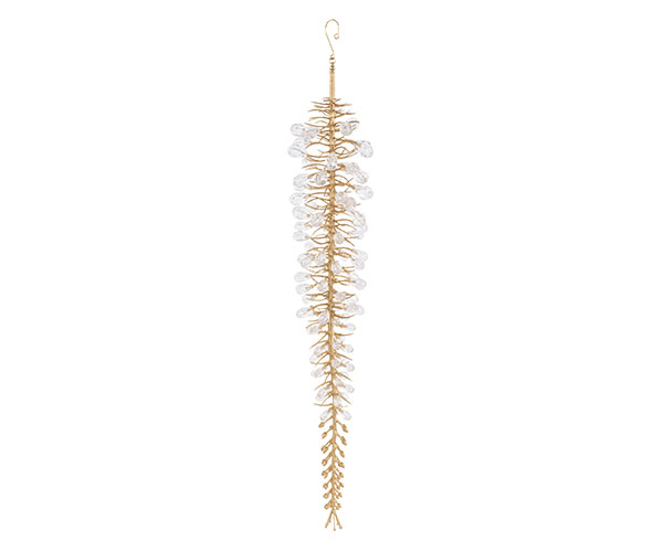 Adorno colgante joya de 40cm con espigas de cristal y cuerpo dorado. Perfecto para árboles de Navidad elegantes y decoraciones verticales con brillo sutil.