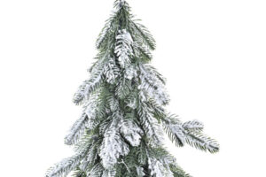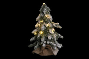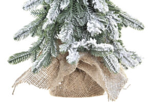 Pino nevado de alten PVC con luces LED y maceta de saco. Compacto y elegante, perfecto para añadir un toque navideño en cualquier espacio.