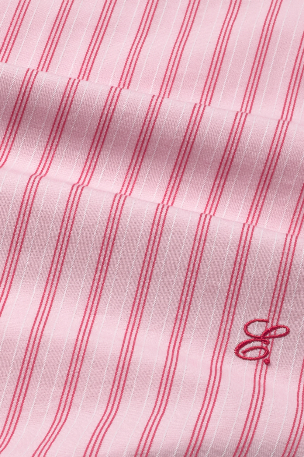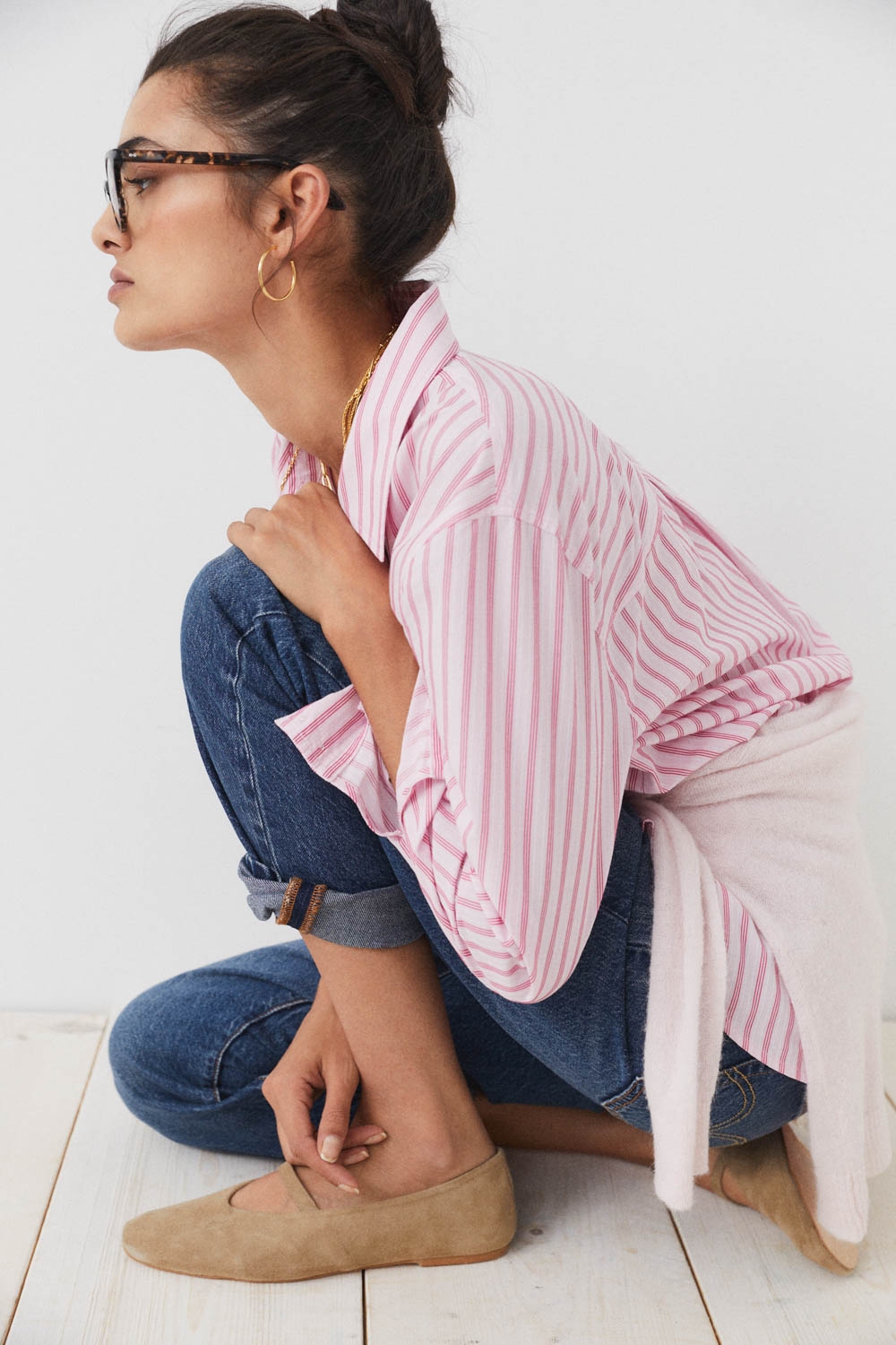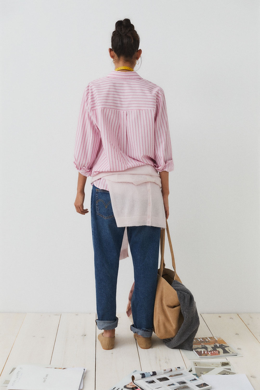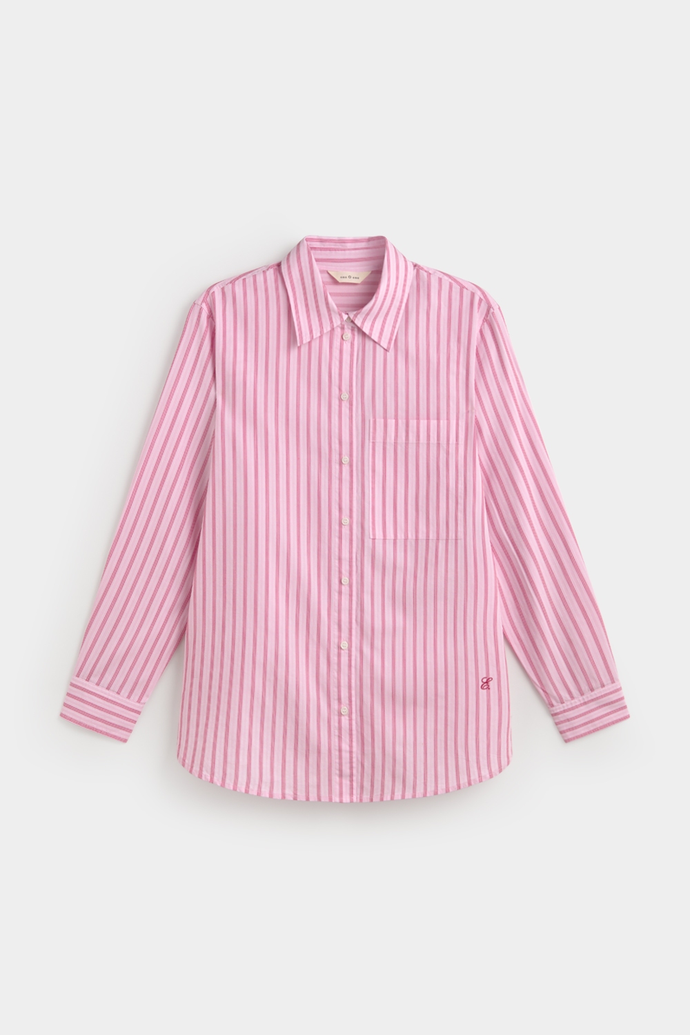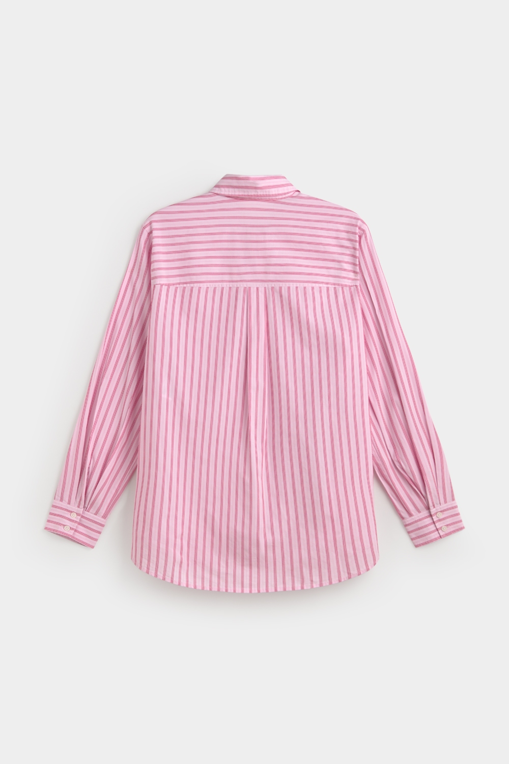 Camisa oversize. Tejido 100% algodón BCI. Diseño con estampado de rayas. Detalle logo bordado en el lateral. Cuello camisero. Manga larga con puños abotonados. Bolsillo de plastrón en la parte delantera. Cierre con botones. Fitting ligeramente holgado.