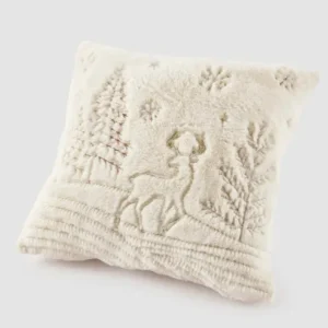 Cojín navideño reno de pelo suave con relieve de bosque. Medidas 45×45 cm