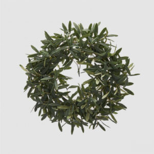 Corona de olivo artificial de 40 cm con hojas detalladas y realistas. Ideal para dar un toque natural y mediterráneo a cualquier espacio.