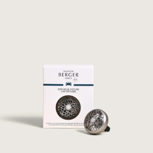 Difusor de coche recargable Graphic en níquel mate. Compatible con todas las rejillas, dispersa la fragancia de manera uniforme. Recargable con cerámicas perfumadas de Maison Berger Paris (se venden por separado).