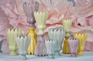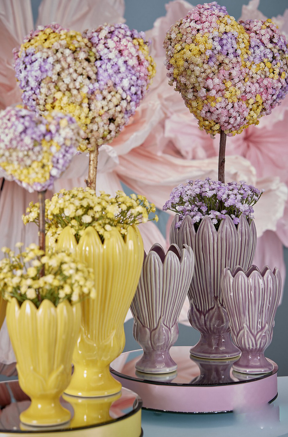 Jarrón cerámica amarillo FOGLIE de 26,5 cm, con diseño floral.