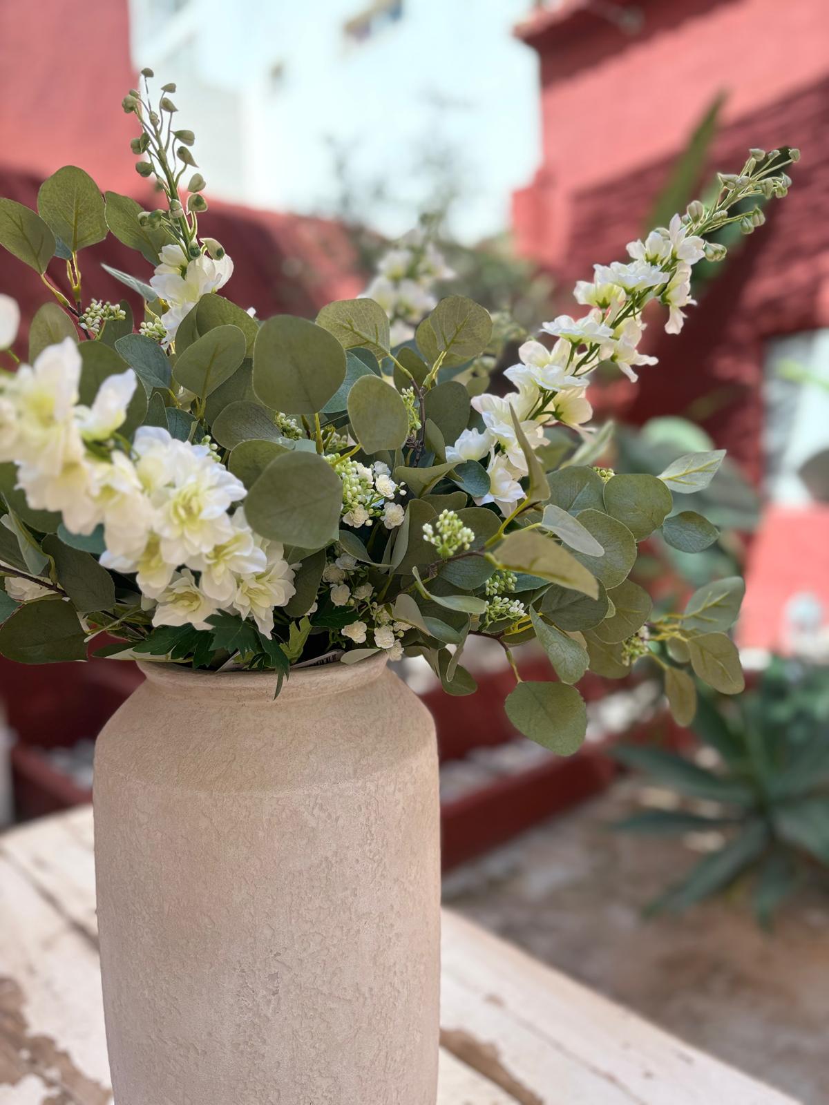 Jarrón de cerámica en acabado artesanal y tono nude. Combínalo con hortensias y será el complemento perfecto para no pasar desapercibido.