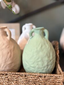 Jarrón cerámica verde mate de 23 cm. Estilo amphora con textura orgánica. Perfecto como florero o decoración en ambientes naturales.