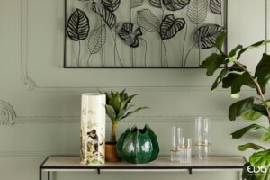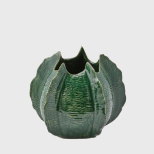 El Jarrón Chackra Bombato 23 cm es una pieza decorativa con diseño orgánico y acabado esmaltado en verde. Perfecto para flores o como elemento de diseño exclusivo.
