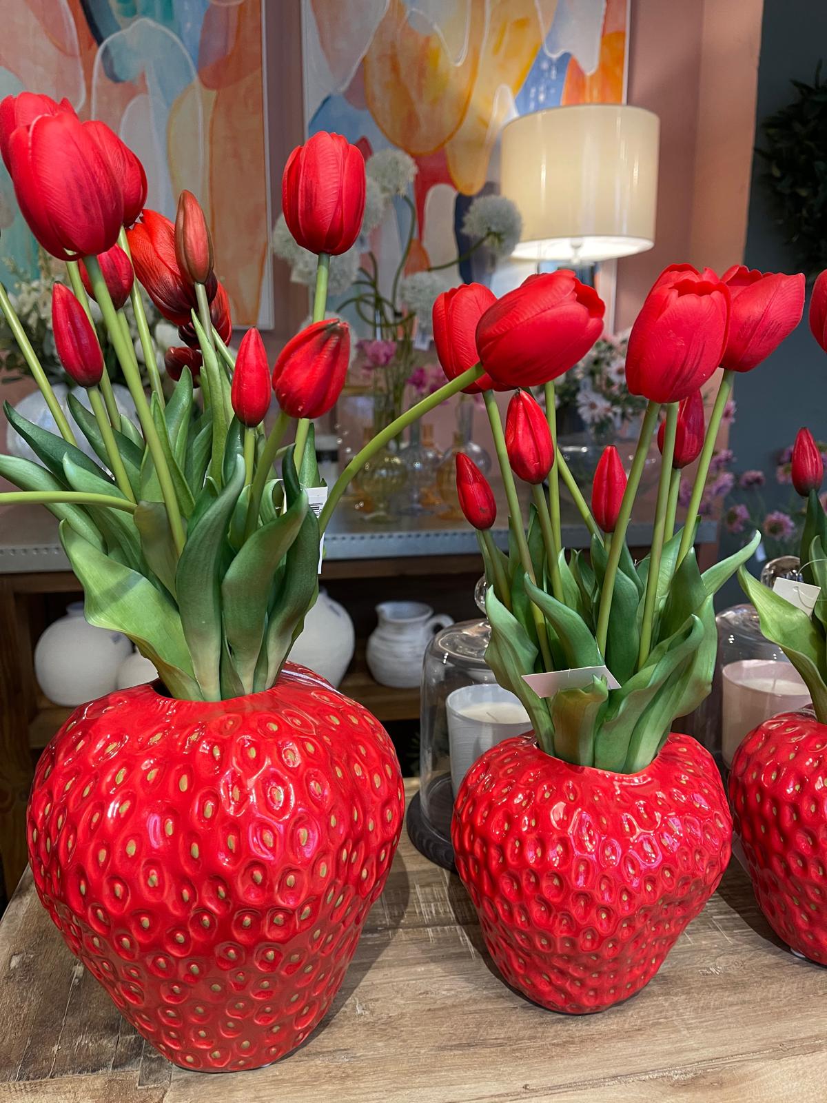 El jarrón fresón de cerámica es una pieza decorativa llamativa y original. Con una altura de 21 cm, un diámetro de 20 cm y una boca de 7 cm, es perfecto para arreglos florales. Su acabado brillante y textura realista añaden frescura a cualquier espacio.