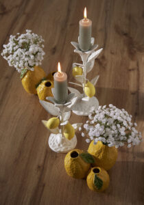Jarrón cerámico de limones con 12,5 cm de altura. Diseño realista y esmaltado brillante.