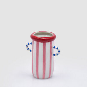 Jarrón rayas cerámica Righe de 20 cm. Estilo original con asas decorativas. Ideal para ramos florales y decoración con personalidad.