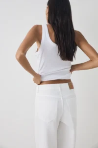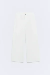 Jeans denim rectos holgados. Sarga fluida de algodón. Tiro medio. Cinco bolsillos. Trabillas. Cierre de cremallera y botón.