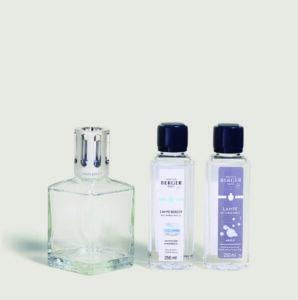 La lámpara Berger Essentielle Carrée vuelve con fuerza, este kit de descubrimiento es una de las mejores ventas, reconocido y apreciado. Su forma cuadrada es una garantía de solidez y de estructura. Su envase transparente, totalmente sobrio, permite ver el nivel de perfume que contiene.