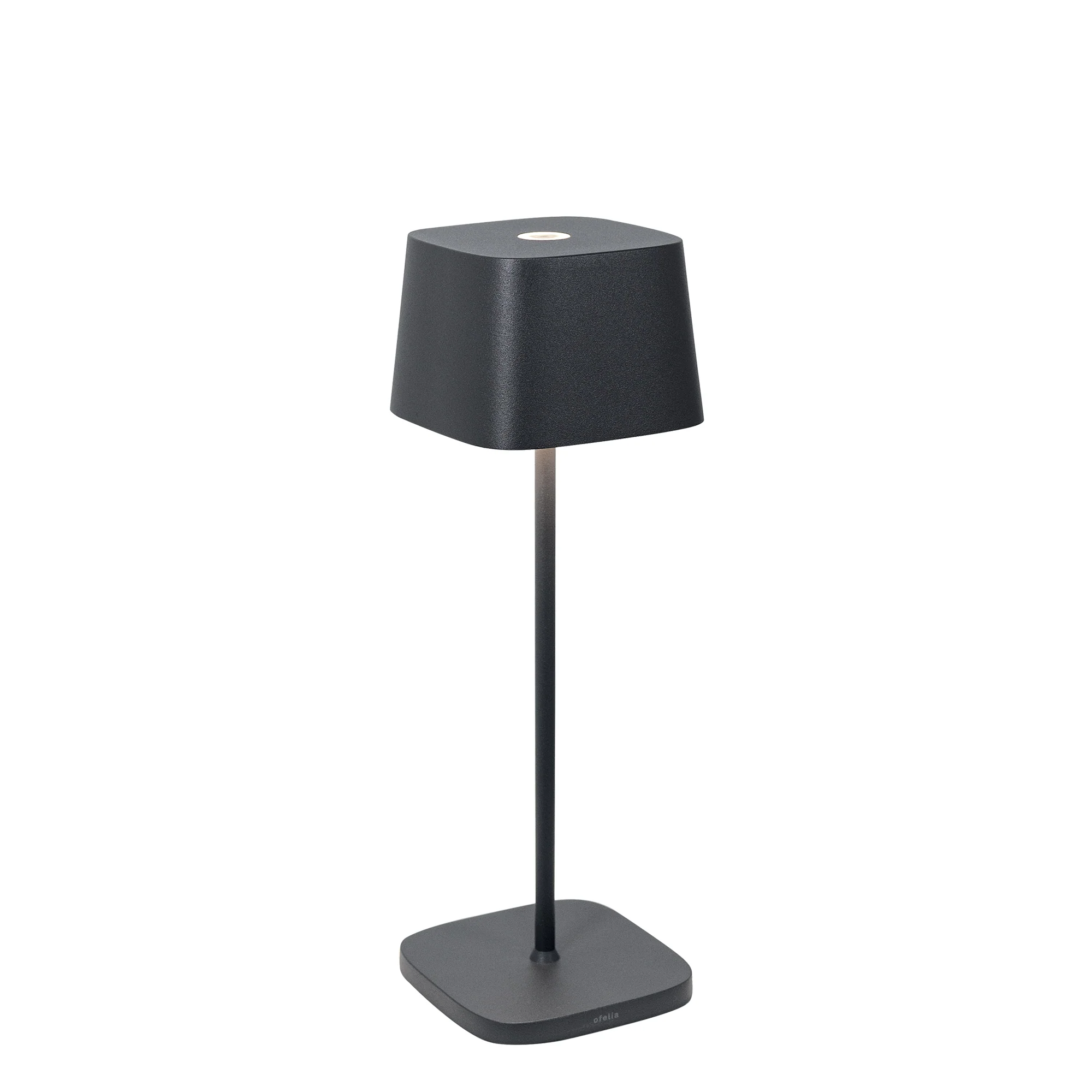 Lámpara de sobremesa con batería, portátil y recargable. Un control táctil en la parte superior del cabezal permite encenderla, regular la intensidad luminosa y seleccionar la temperatura de color de la luz. Gracias a su alto grado de protección, la lámpara también se puede utilizar en exteriores.También dispone de una función de memoria de ajuste de la intensidad luminosa, que memoriza los pasos de regulación, de modo que cada vez que se encienda, la intensidad luminosa corresponderá a la ajustada previamente. Gracias a su alto grado de protección, la lámpara también puede utilizarse en exteriores. Equipada con base de carga por contacto. Cargador incluido.