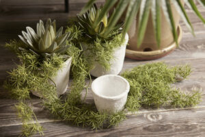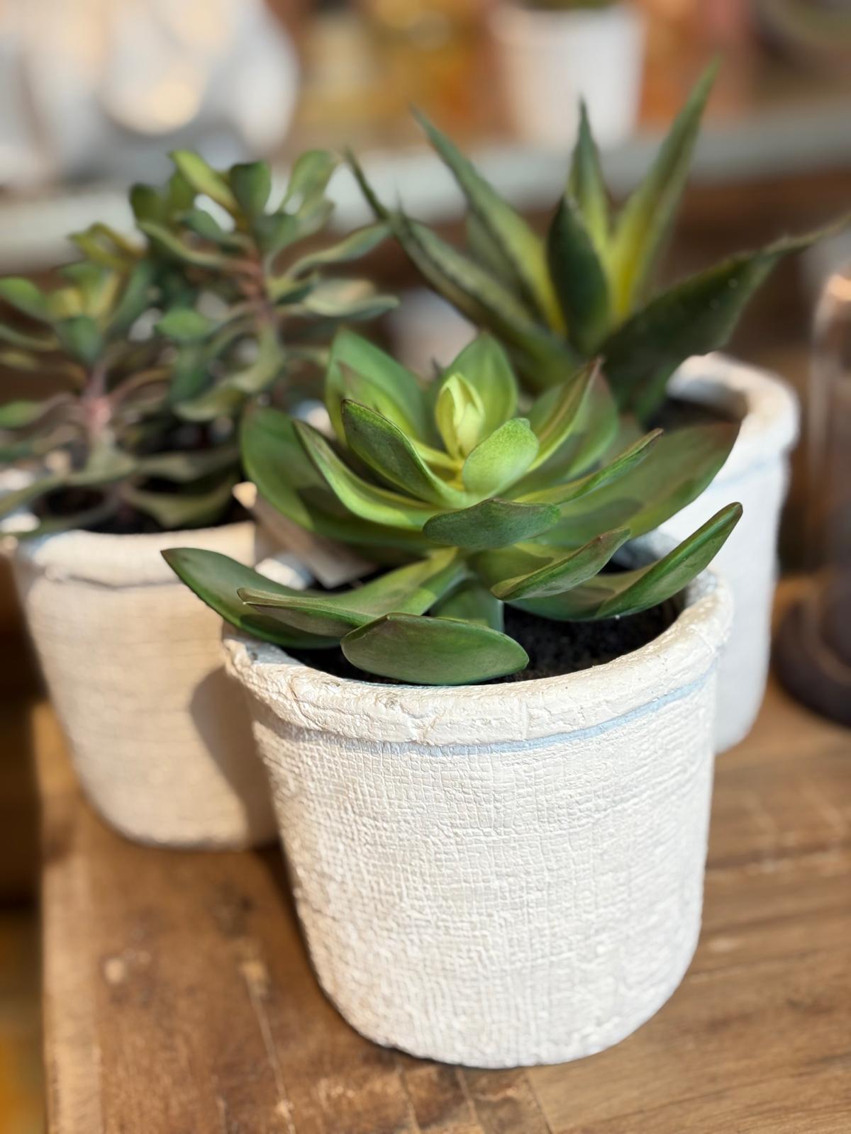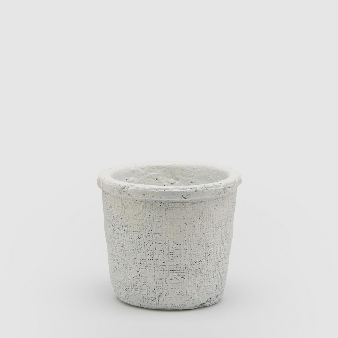Macetero blanco cerámica SVAS. Ideal para plantas pequeñas. Acabado texturizado rústico y diseño decorativo.
