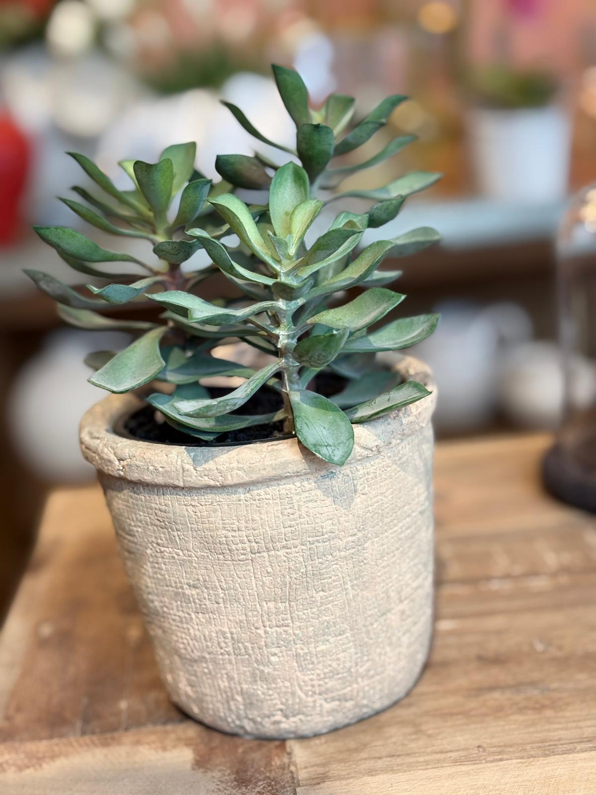 Macetero de cerámica SVAS. Ideal para plantas pequeñas. Acabado texturizado rústico y diseño decorativo.