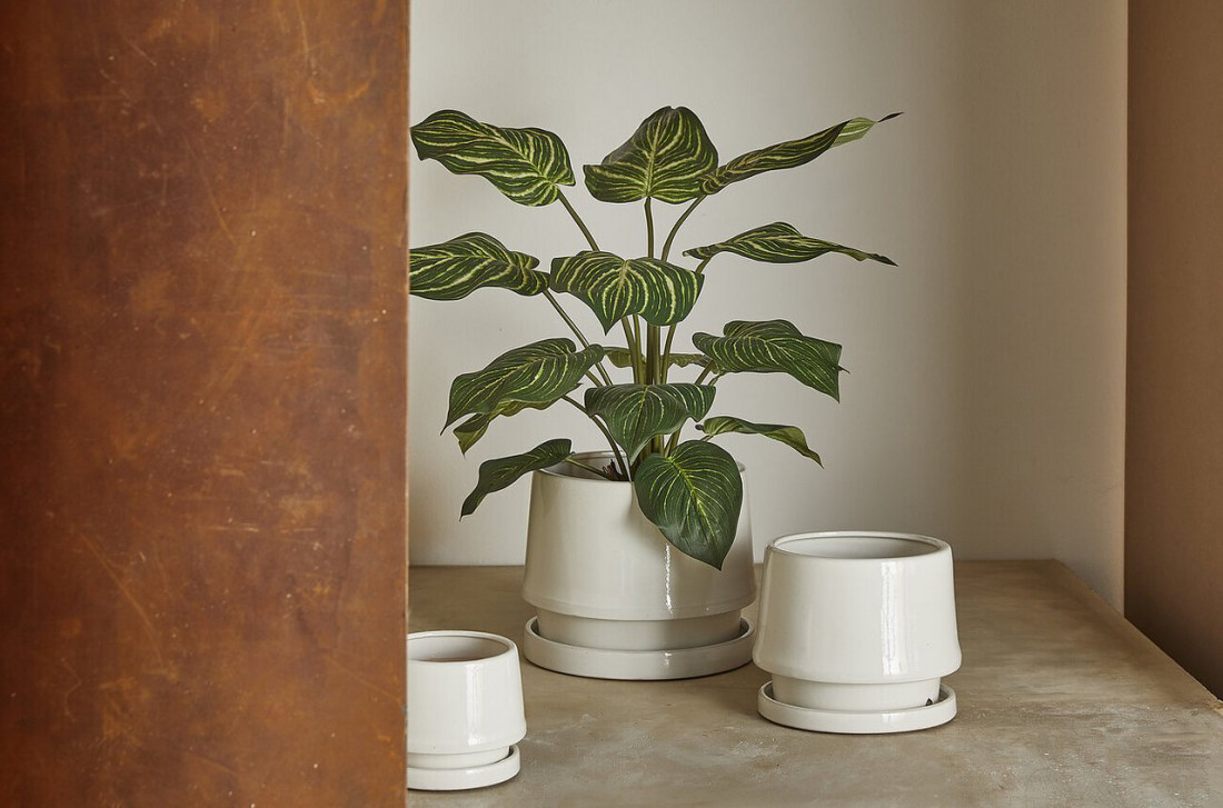 El Macetero Trapezoid con Plato y altura de 21cm es un complemento ideal para plantas grandes. Con su diseño minimalista en cerámica blanca y 26 cm de diámetro, aporta elegancia y funcionalidad.