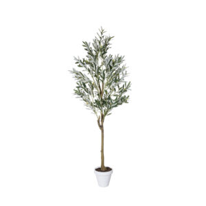 Olivo artificial decorativo de 160 cm con hojas y aceitunas realistas. Aporta frescura mediterránea sin mantenimiento. Perfecto para interiores modernos o rústicos.