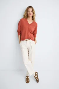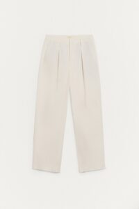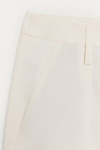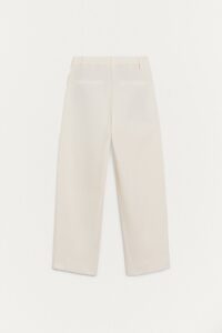 Pantalón tobillero en color crema. Tejido mezcla algodón técnico. Tiro alto. Trabillas. Dos bolsillos laterales. Detalle de pinzas en la parte delantera. Cierre de gancho metálico y cremallera. Fitting recto. Dispone de una camisa a conjunto, se vende por separado.