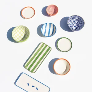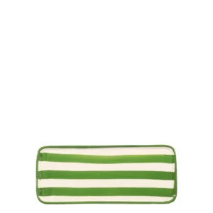 Plato cerámica verde rectangular hecho a mano. Diseño rayado vibrante, ideal para servir o decorar. ¡Perfecto para emplatar tapas, sushi o postres!