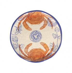 Este plato llano de 32 cm es perfecto para aquellos que buscan añadir un toque costero a su mesa. Fabricado en resistente melamina, su diseño vibrante y detallado de cangrejos en tonos naranjas, con un borde azul marino y detalles florales en azul, evoca el ambiente relajante del océano. Ideal para comidas al aire libre, picnics o cenas temáticas, este bowl no solo aporta estilo sino también funcionalidad, ya que es resistente a golpes y caídas.