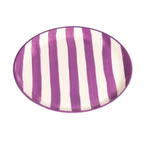 Set de 2 platos rayas violeta de 28 cm. Pintados a mano en Italia. Diseño artesanal vibrante que añade estilo y color a tu mesa.