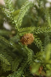 Rama cryptomeria piñas de 45 cm. Realista y decorativa, perfecta para arreglos navideños, coronas o centros de mesa con un estilo natural.