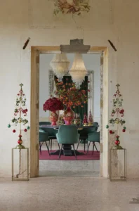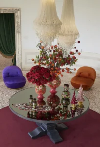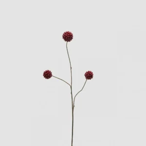 Rama esferas ilex artificial de 80 cm. Incluye tres esferas decorativas rojas. Ideal para arreglos florales, centros de mesa o jarrones con estilo navideño.