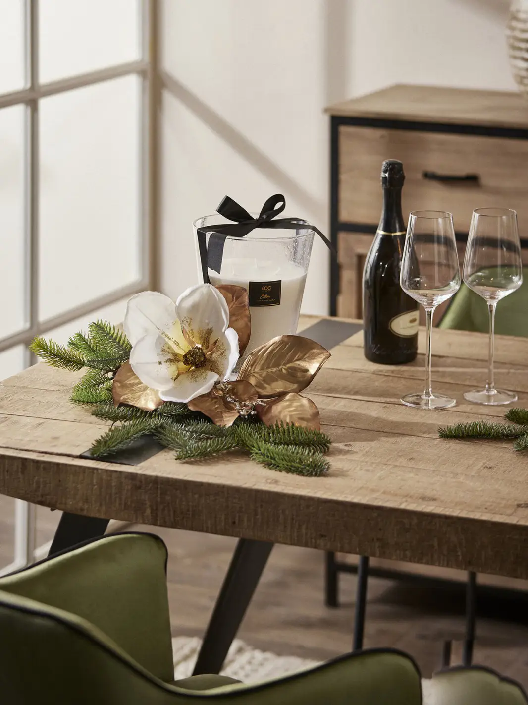 Rama con flor de magnolia y hojas doradas. Mide 61 cm de alto. Ideal para árboles, jarrones o centros de mesa.