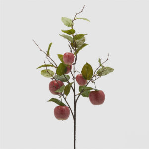 Rama de manzano artificial de 80 cm con seis manzanas y hojas detalladas. Ideal para decoraciones de estilo natural y arreglos florales duraderos.
