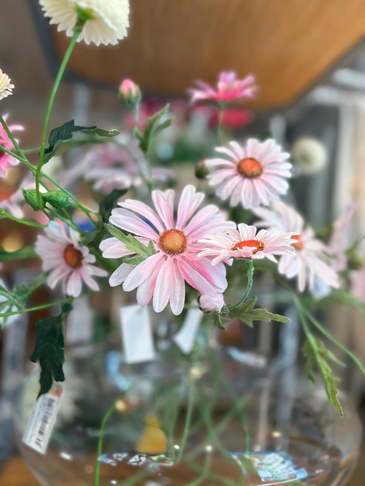 Rama margaritas artificial rosa con 4 flores y 60 cm de altura. Ideal para arreglos florales duraderos, realistas y llenos de color.