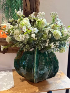 Ramillete de Dalia artificial de 37 cm. Perfecto para jarrones medianos, con flores realistas y follaje detallado. Ideal para decorar sin mantenimiento.