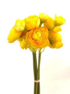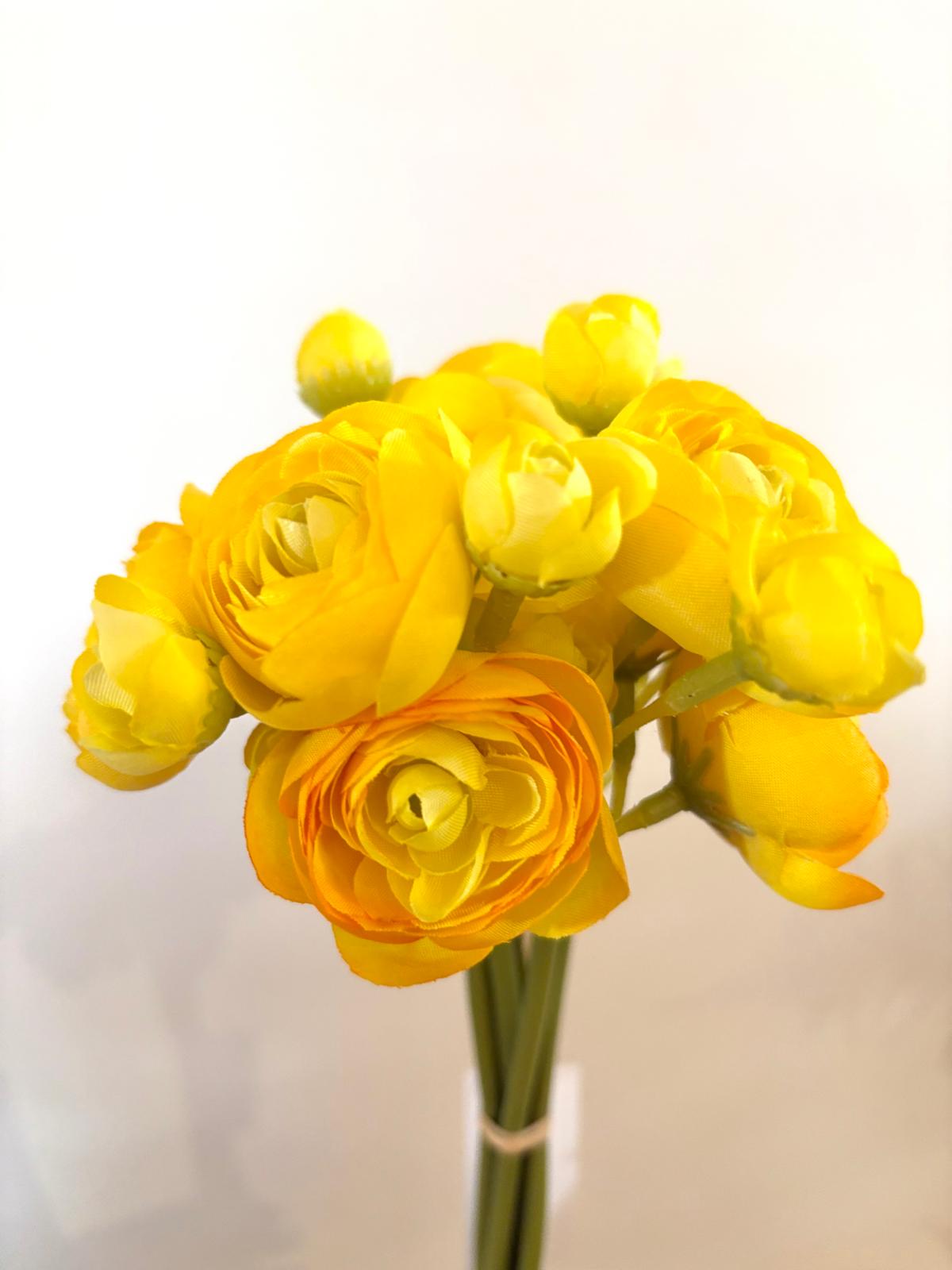 El ramillete de ranúnculos amarillos de 30 cm es ideal para jarrones pequeños y decoraciones llenas de luz. Combínalo con nuestros ranúnculos rosa para una composición perfecta.
