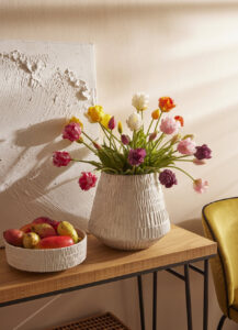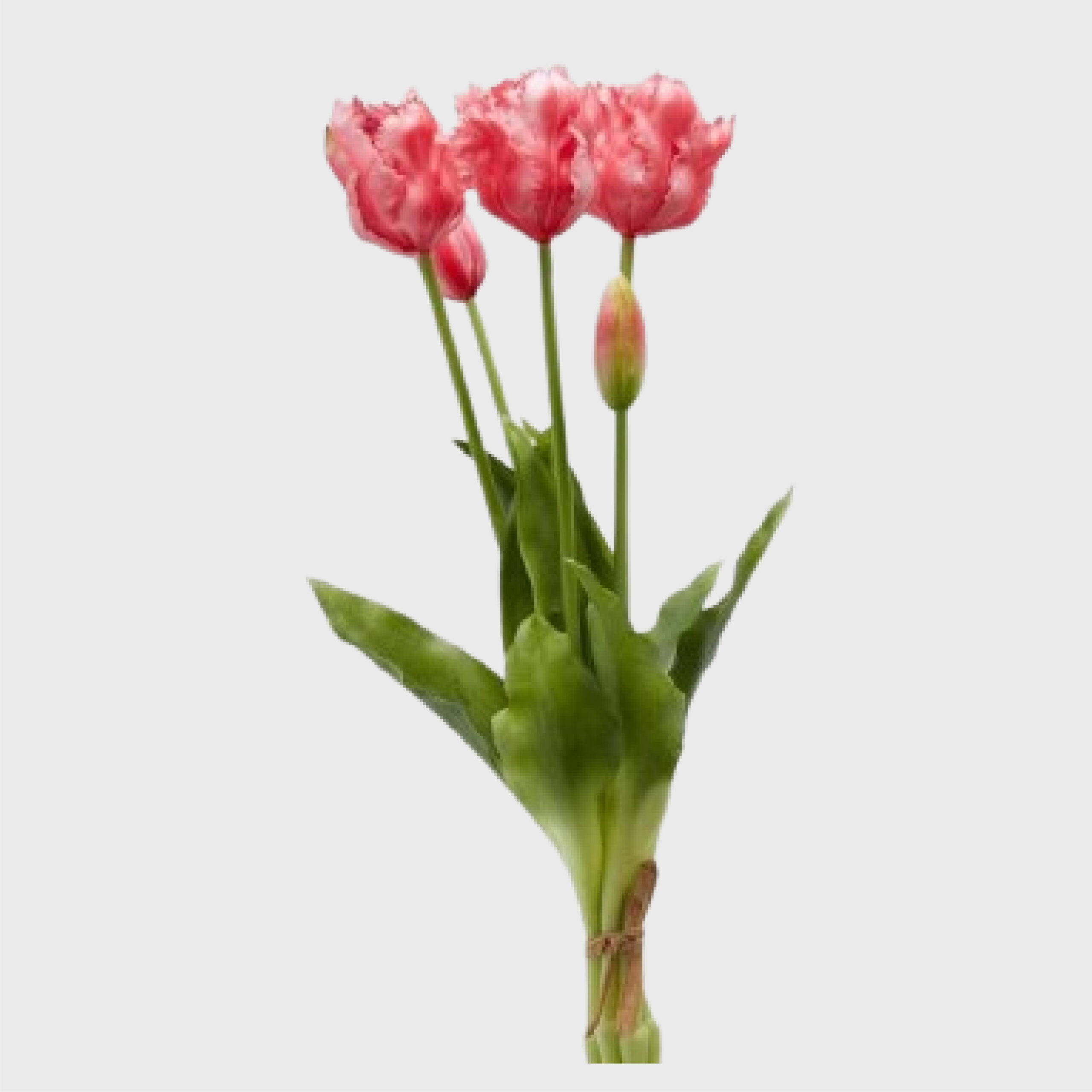 Este ramo de tulipanes Parrot artificiales en color fresa aporta un toque sofisticado y natural a cualquier espacio.