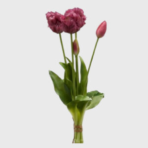 El Tulipán Parrot Morado es una flor artificial realista con pétalos rizados y un vibrante color morado. Perfecto para decorar sin mantenimiento.