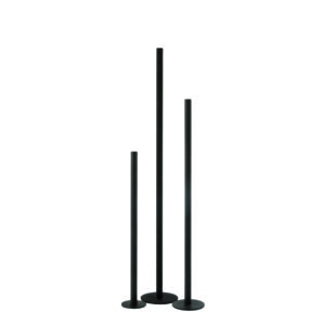 Cada candelabro del set cuenta con una altura distinta —60 cm, 80 cm y 100 cm— permitiendo jugar con las proporciones y añadir dinamismo visual. Su acabado en metal negro mate le confiere un aire contemporáneo y atemporal, que los hace perfectos para integrarse en una amplia gama de estilos decorativos.