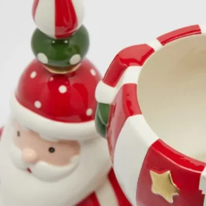 Tarro navideño cerámica con forma de Papá Noel. Perfecto para guardar dulces y decorar con estilo.