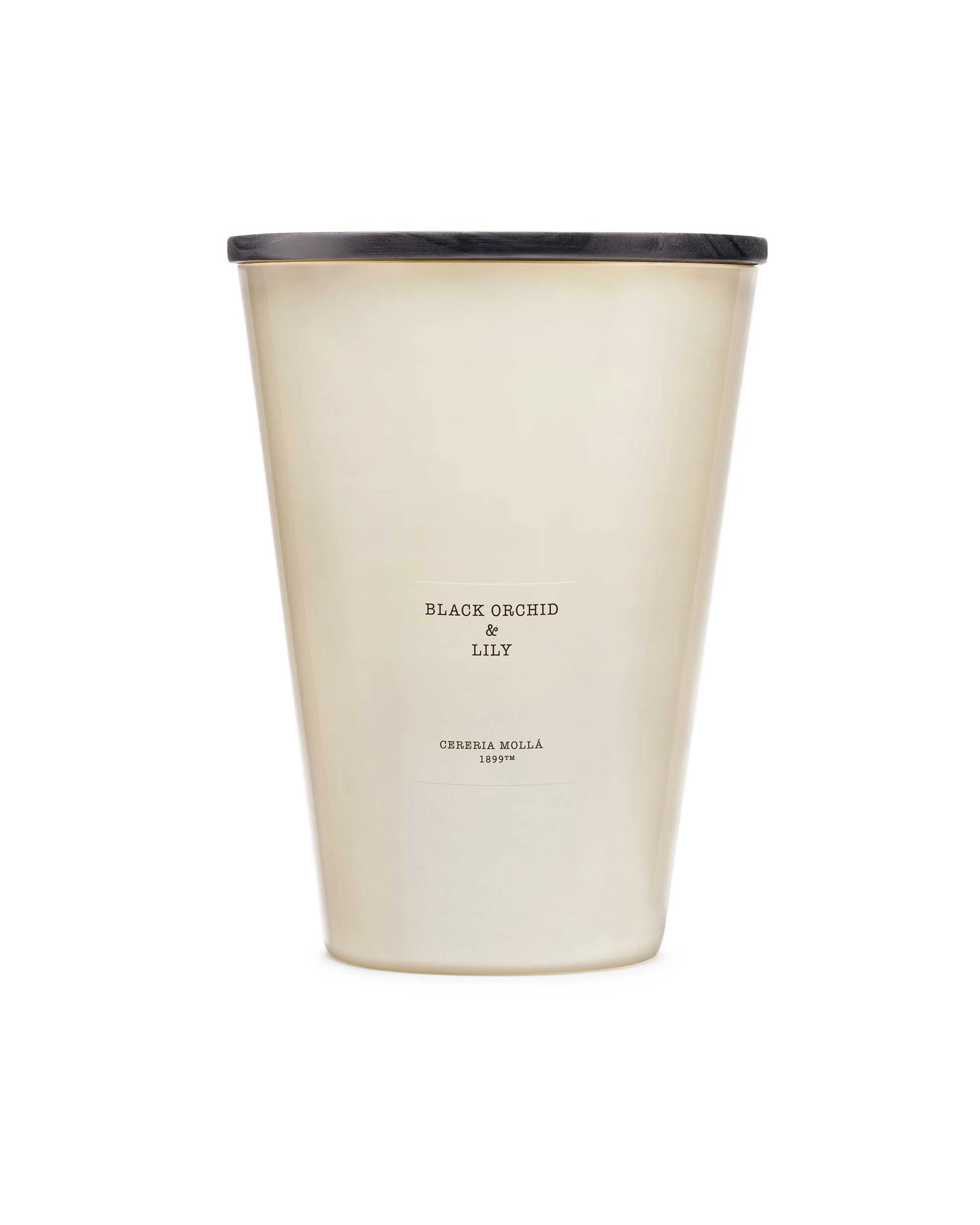 Descubre nuestra majestuosa vela aromática Black Orchid & Lily, en un tamaño impresionante de 3,5 kg, equipada con 4 mechas que brindan una experiencia de luz y fragancia incomparable.