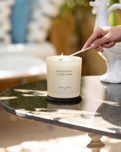 Descubre nuestra espléndida vela aromática Bergamotto di Calabria, en un tamaño magnífico de 600 gr, equipada con 3 mechas que brindan una experiencia de luz y fragancia incomparable.
