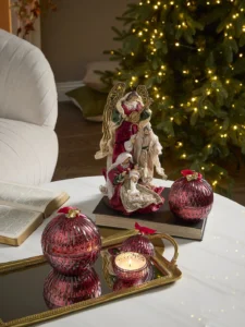 Vela mil y una noches en esfera mediana de cristal rojo. Aroma flora con un toque exótico, ideal para crear ambiente festivo y regalar.